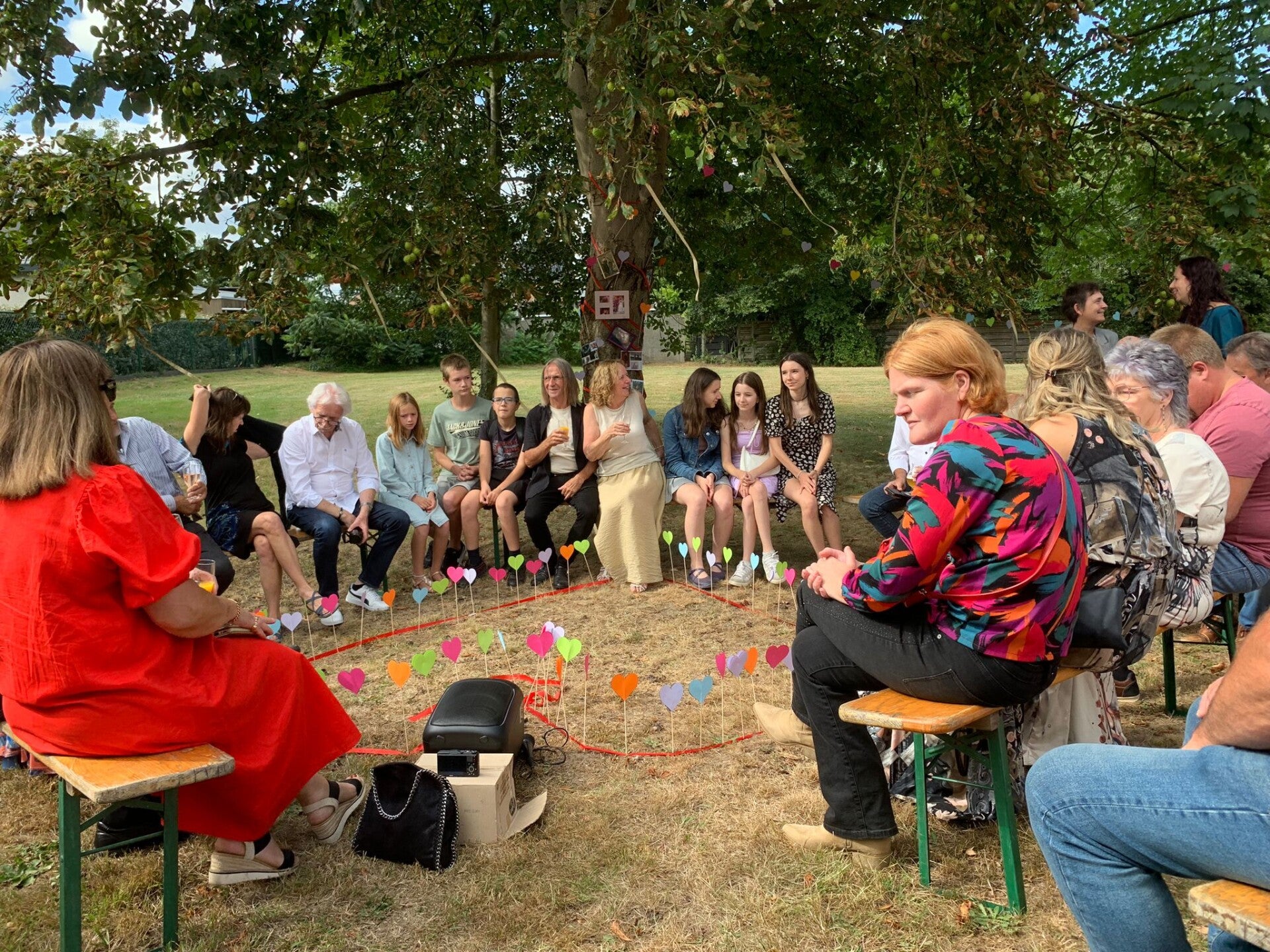 We waren ontroerd, geraakt, ondergedompeld in een sfeer van samenhorigheid tijdens een prachtige ceremonie onder de kastanjeboom in een cirkel van liefde. We werden verwend door zoveel warmte rondom ons ...